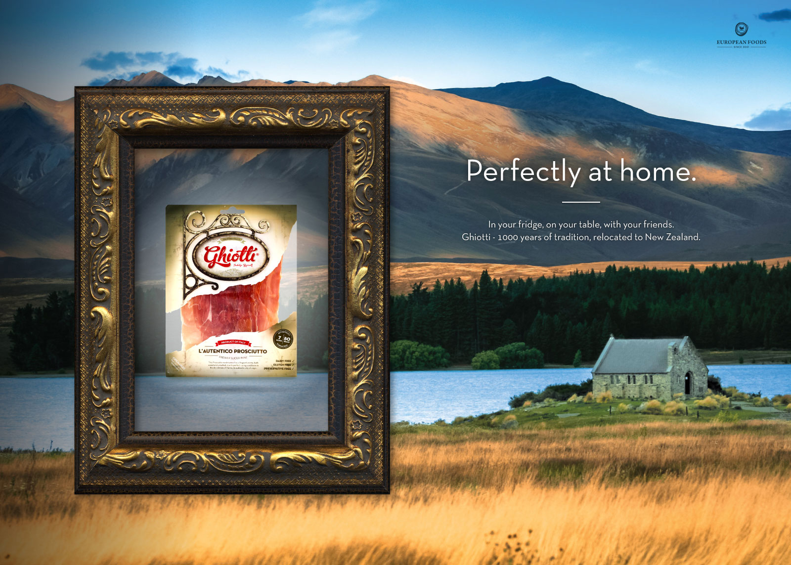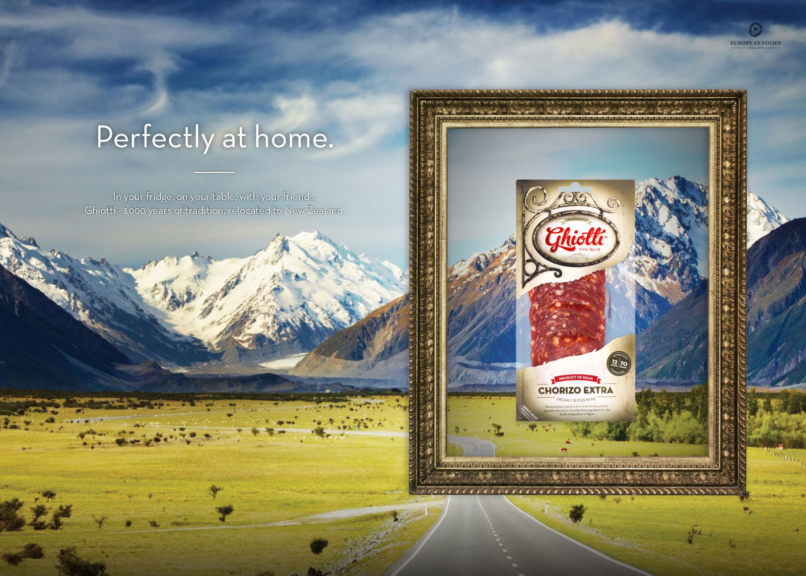 We've worked with Ghiotti on several advertising campaigns, from conception to print. The Ghiotti "Perfectly At Home" campaign was printed in major New Zealand magazines, and features different Ghiotti products which have been "relocated" from their homeland, to become works of art against famous NZ landmarks. Perfectly at home, in your fridge, on your table, with your friends. Ghiotti - 1000 years of tradition, relocated to New Zealand.