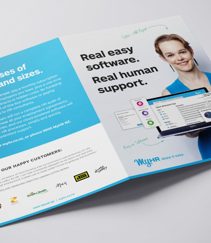We've worked closely with cloud-based HR service MyHR since they were founded in 2013, helping them to grow from an ambitious two-man team to NZ's largest independent HR provider.