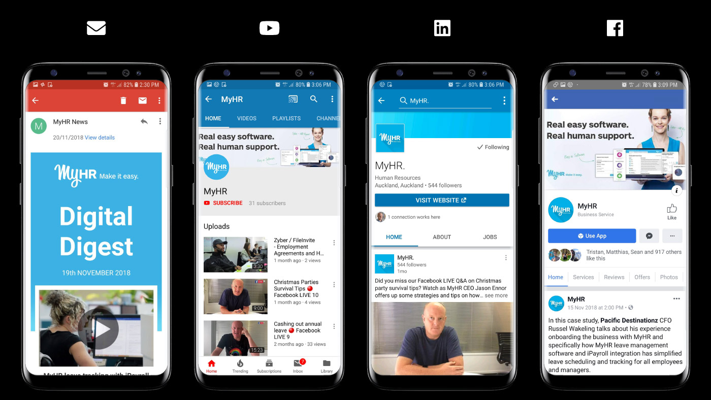 We've strategically utilised MyHR's social media channels, including Facebook Live, Facebook lead generation ads and Linkedin ads, as well as regularly creating EDMs, video content and downloadable resources.