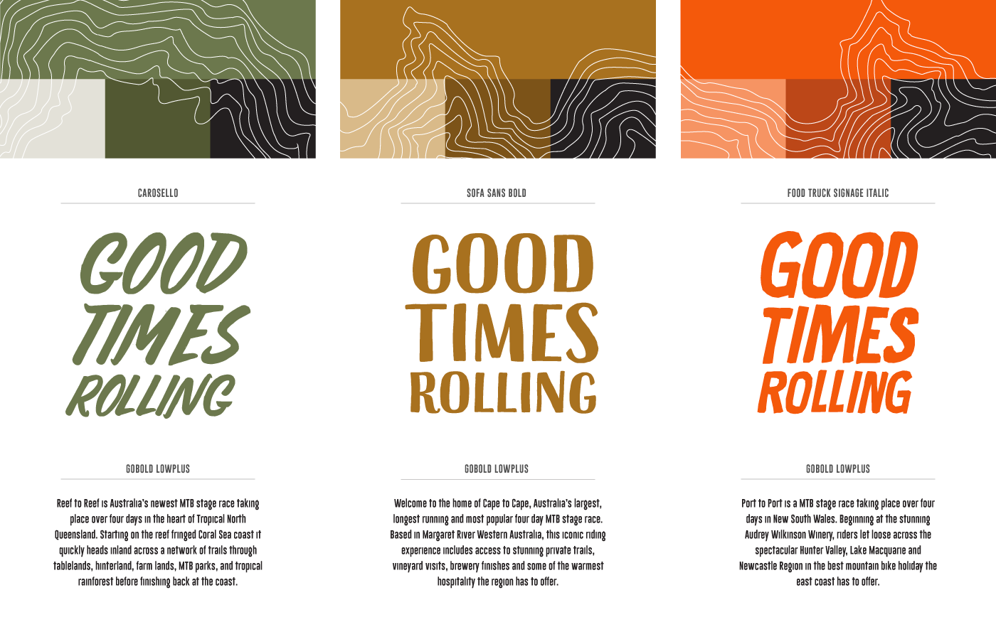 We were excited to design the brand identity and website for 'Reef to Reef', a 4 day MTB stage race with its inaugral event in North Queensland in 2018. We created the craft-beer inspired brand to suit the pillars of 'Good Mates', 'Fun Trails' and 'Cold Beers', and the overarching slogan 'Good Times Rolling'.